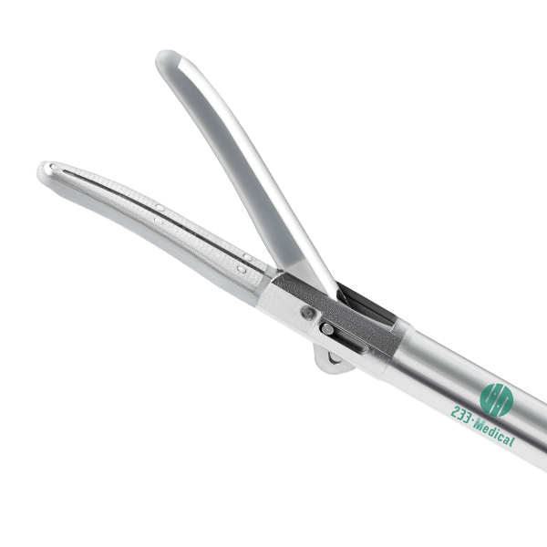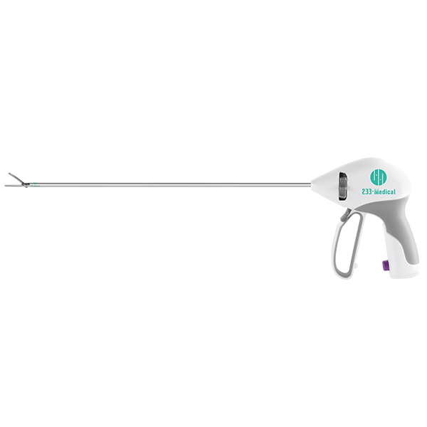 Pistol-grip instruments designed for ergonomic comfort and efficiency in laparoscopic procedures.